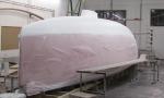 Zweimal ist die Rumpfunterseite gespritzt worden. Die noch vorhandenen letzten Poren müssen vor dem Spritzen der dritten Schicht noch gespachtelt werden.